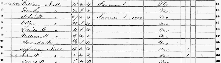 Louisa C. Null: 1850 Census, Jefferson Co. Missouri