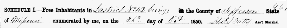 Free Inhabitants in District No. 42 County of Jefferson, State of Missouri enumerated on 25th day of Oct. 1850.