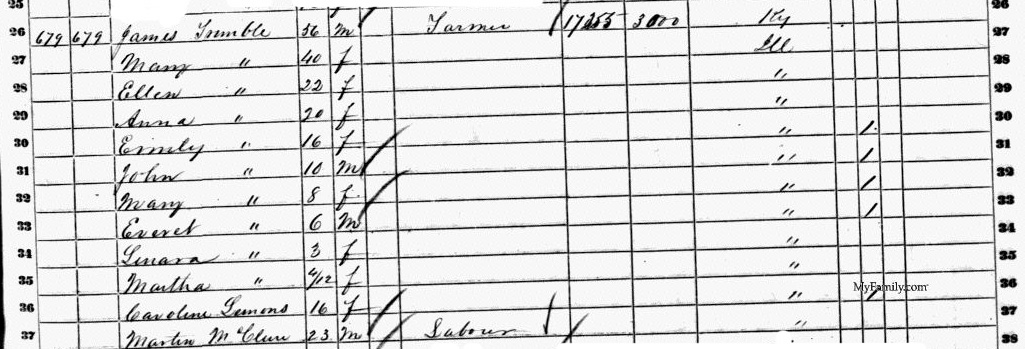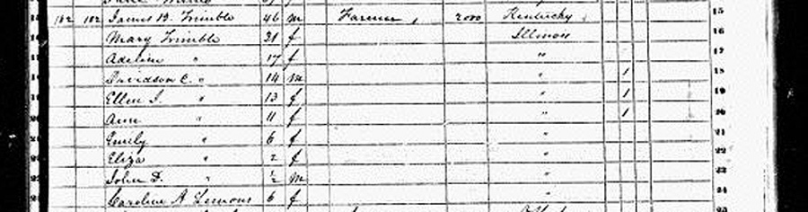 | Ruddell, Emma: Boarder, White, F, Jan. 1844, 56. Born in Illinois. |